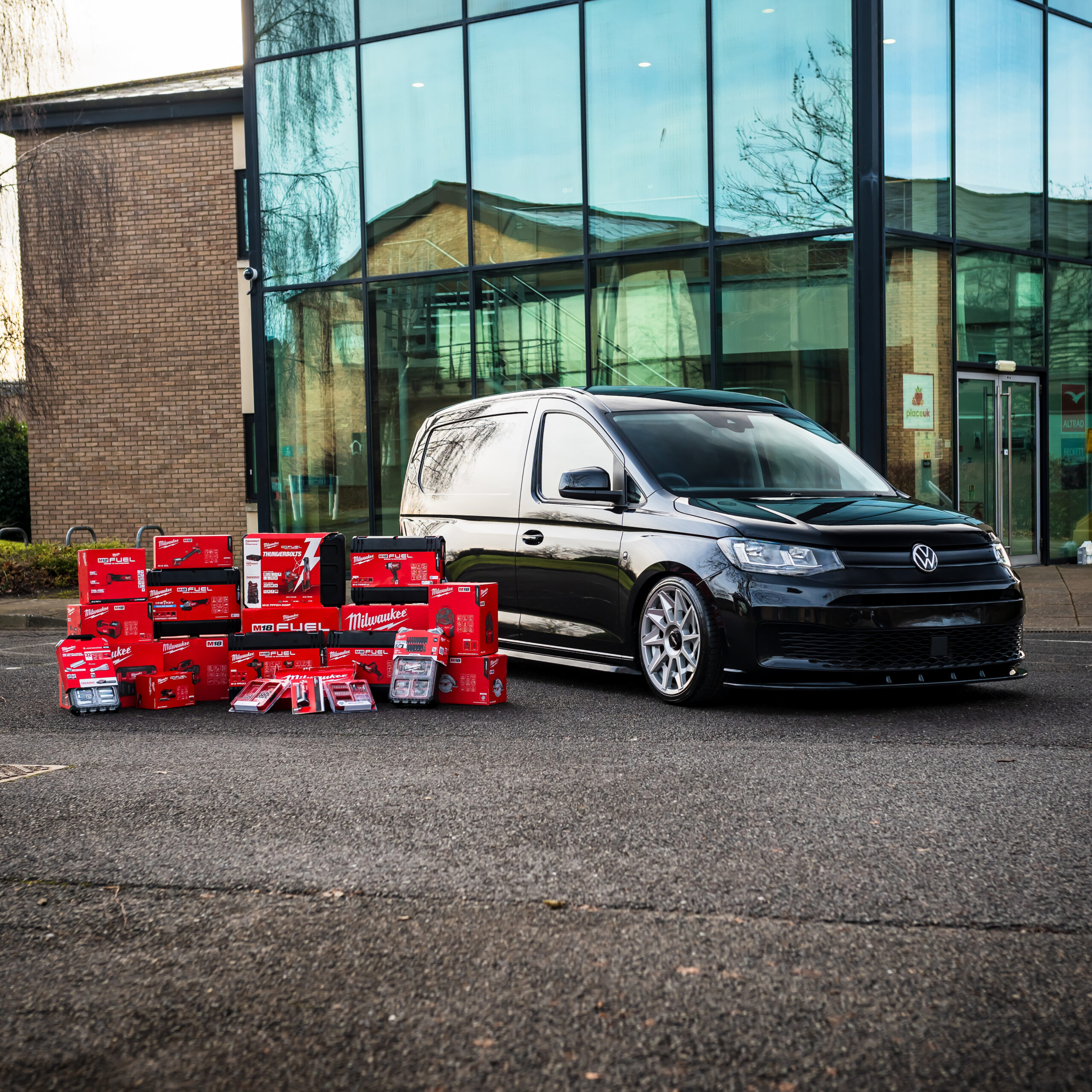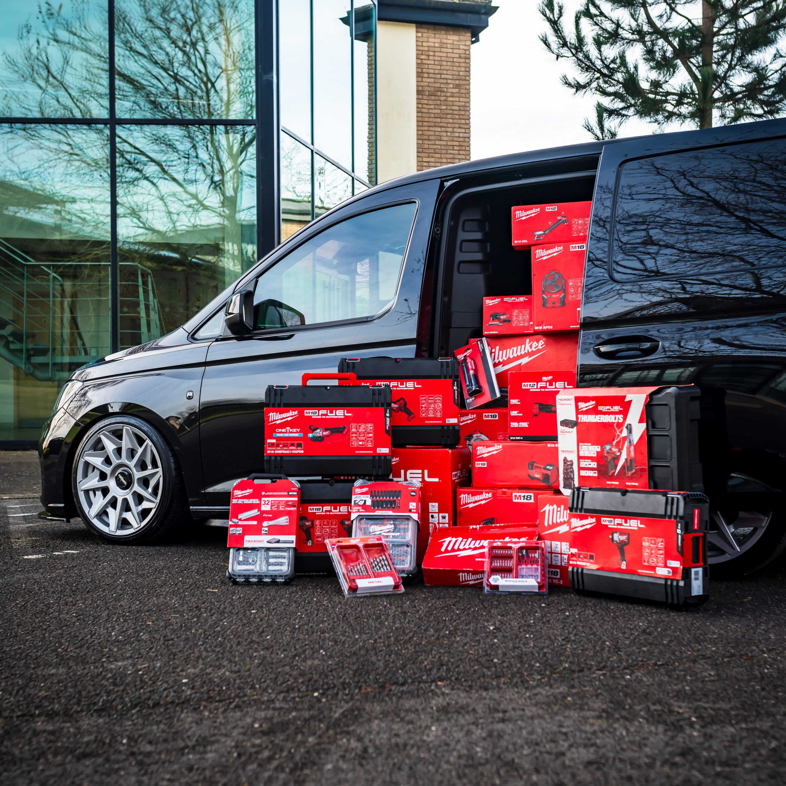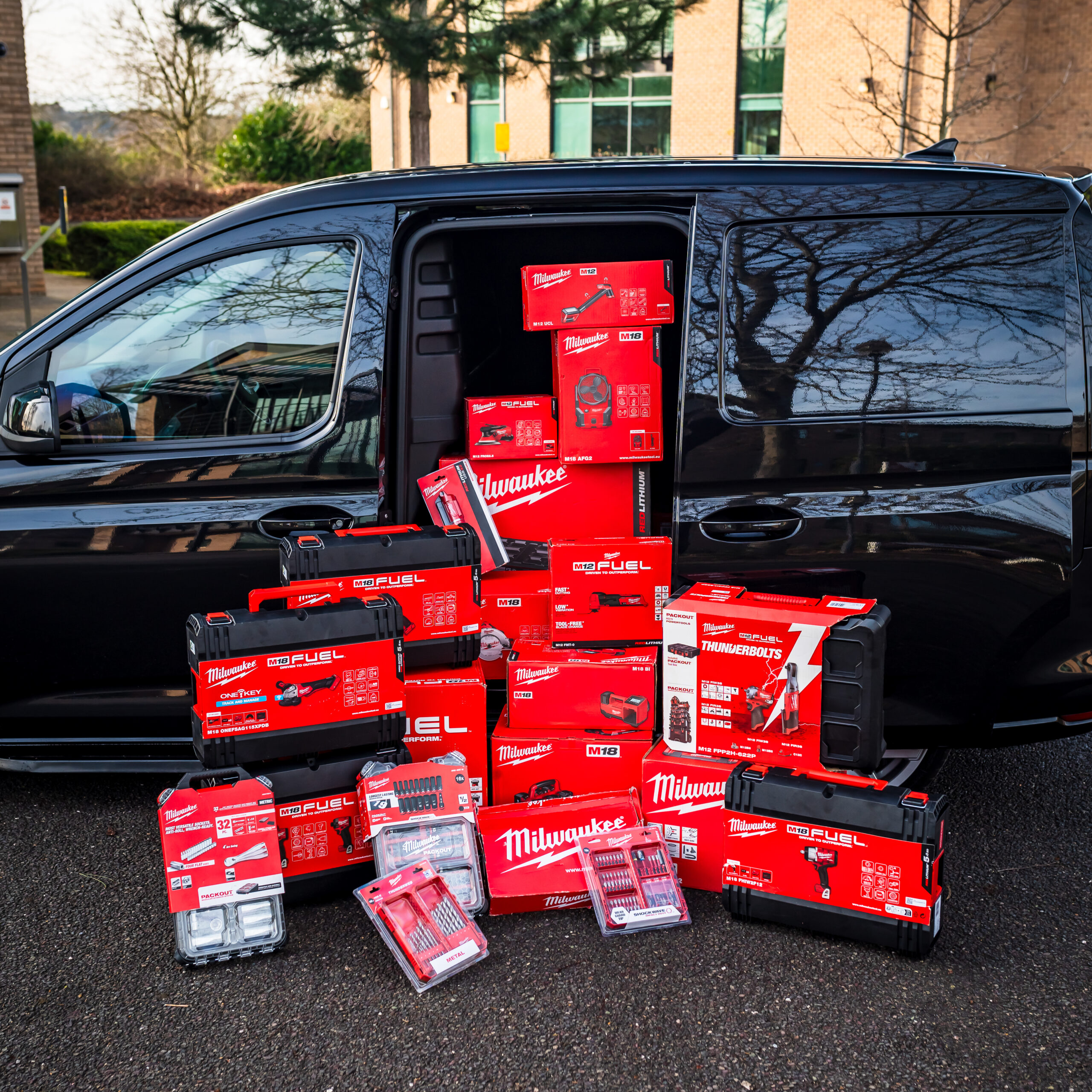 We are super excited to show you all this big bundle! In one of the best colours for these vans you can be sure everyone at work will be wanting to steal this from you. Absolutely packed in the back with Milwaukee tools & with cash included you can be sure this will get you set up for business! Fancy your chance to win this van? Enter now!