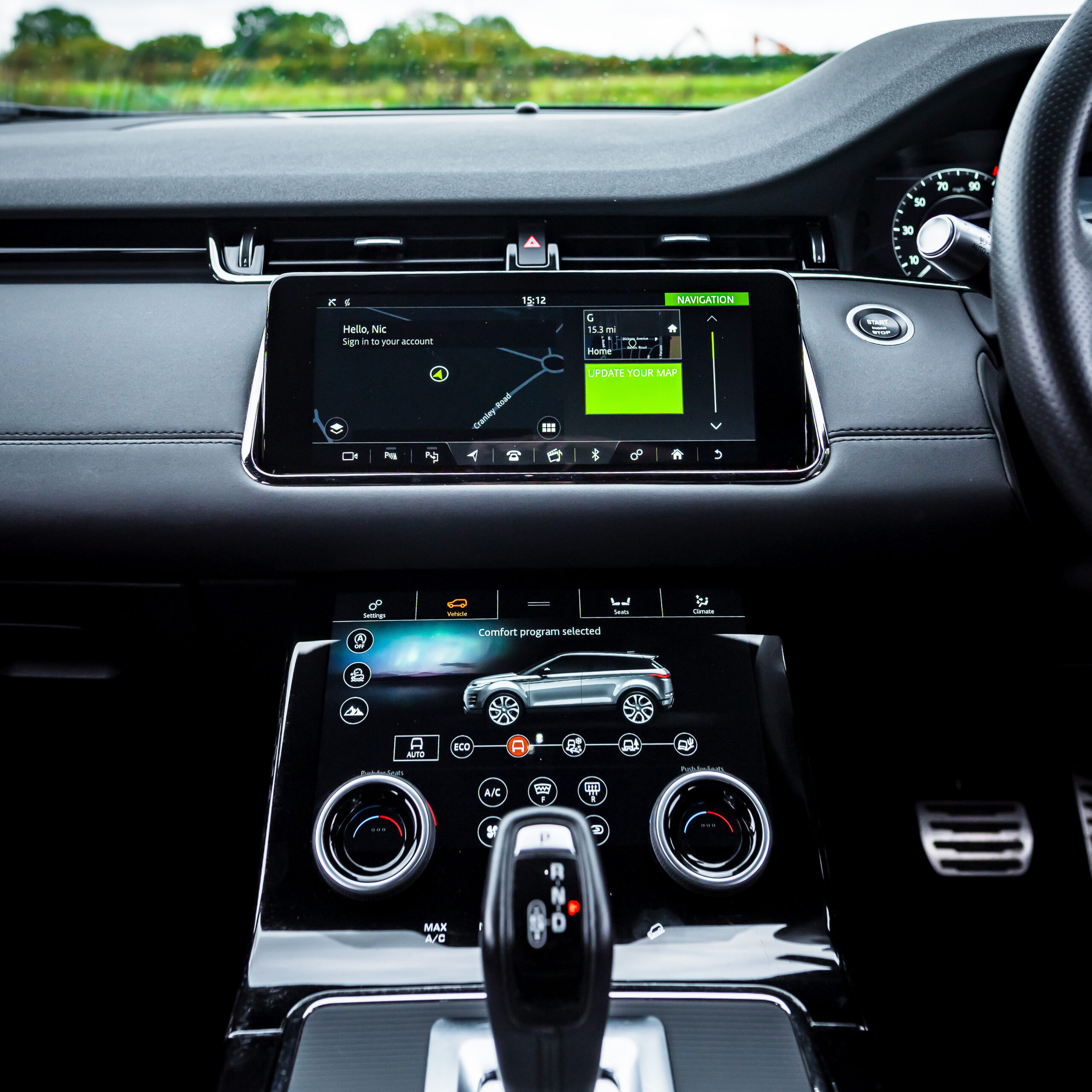 Every Evoque gets dual-zone climate control, automatic lights and wipers, front and rear parking sensors, LED headlights, heated front seats and a 10.0in touchscreen infotainment system with Apple CarPlay and Android Auto connectivity. A rear-view camera is also standard!