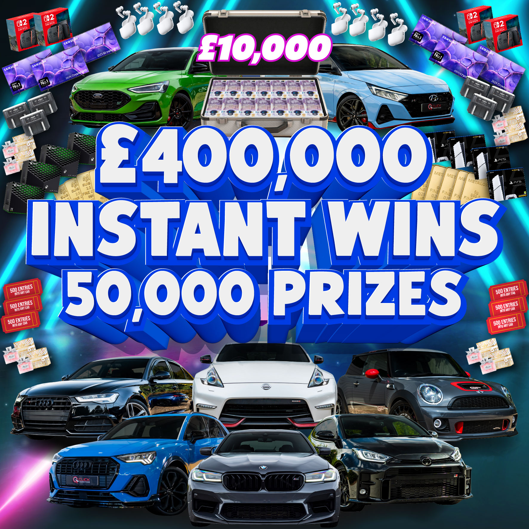 For a low entry price, not only do you have the chance to win the £2,000 end prize there is also a chance to WIN 50,000 PRIZES INSTANTLY! (WORTH £400,000)