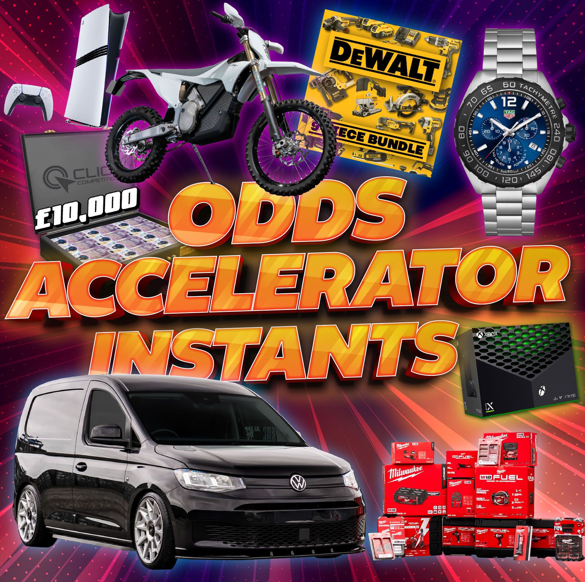 99p could win you tickets into the 2023 VW Caddy TDI + HUGE Milwaukee Tool Bundle and so much more!