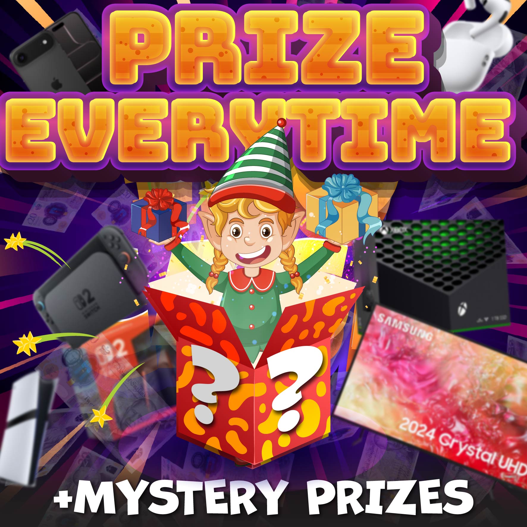 For a super low entry fee you have your chance to win Mystery Prizes, Cash, Gold, Tech, Tools and so much more. There is a total of 17,500 instant wins and every ticket is guaranteed at least £2!
