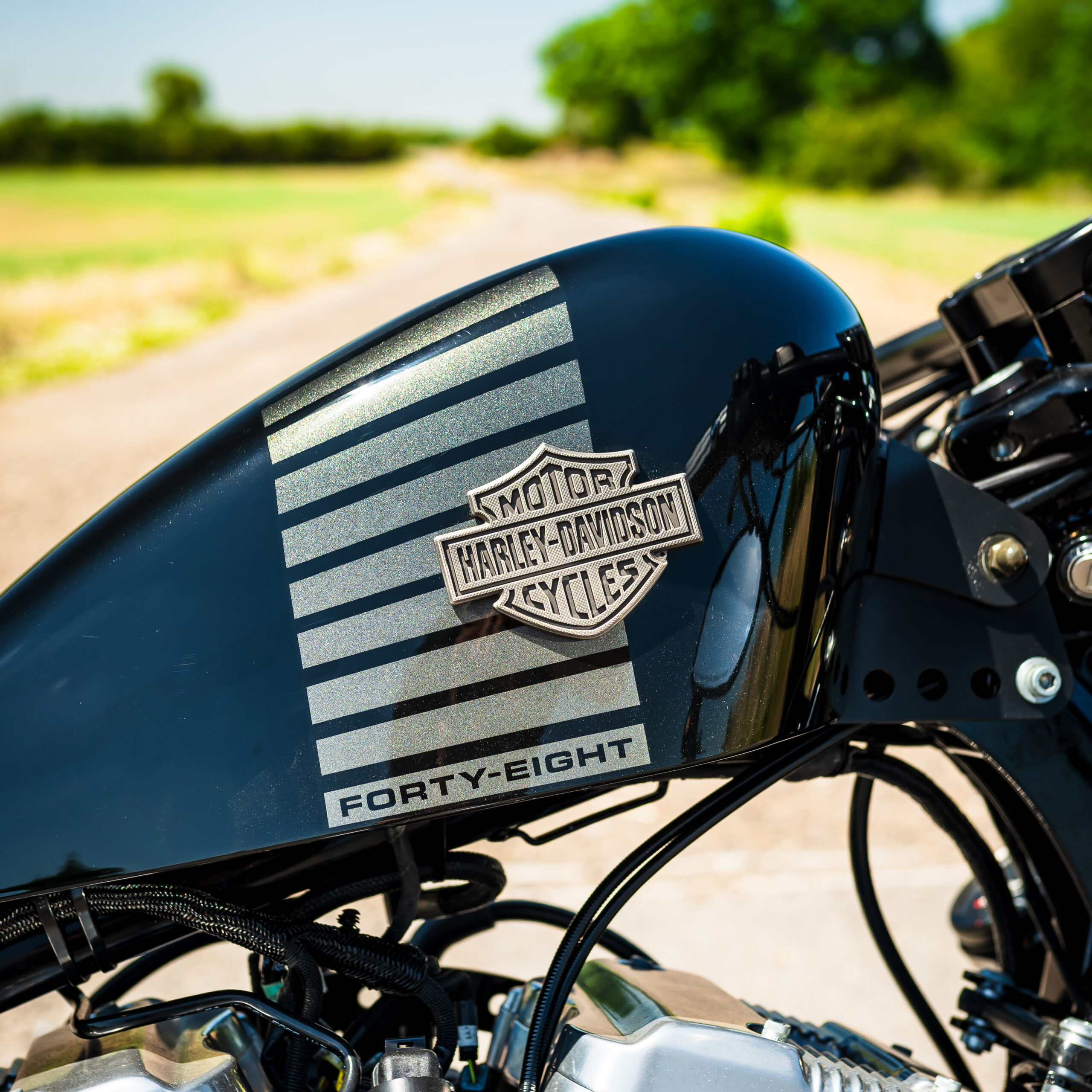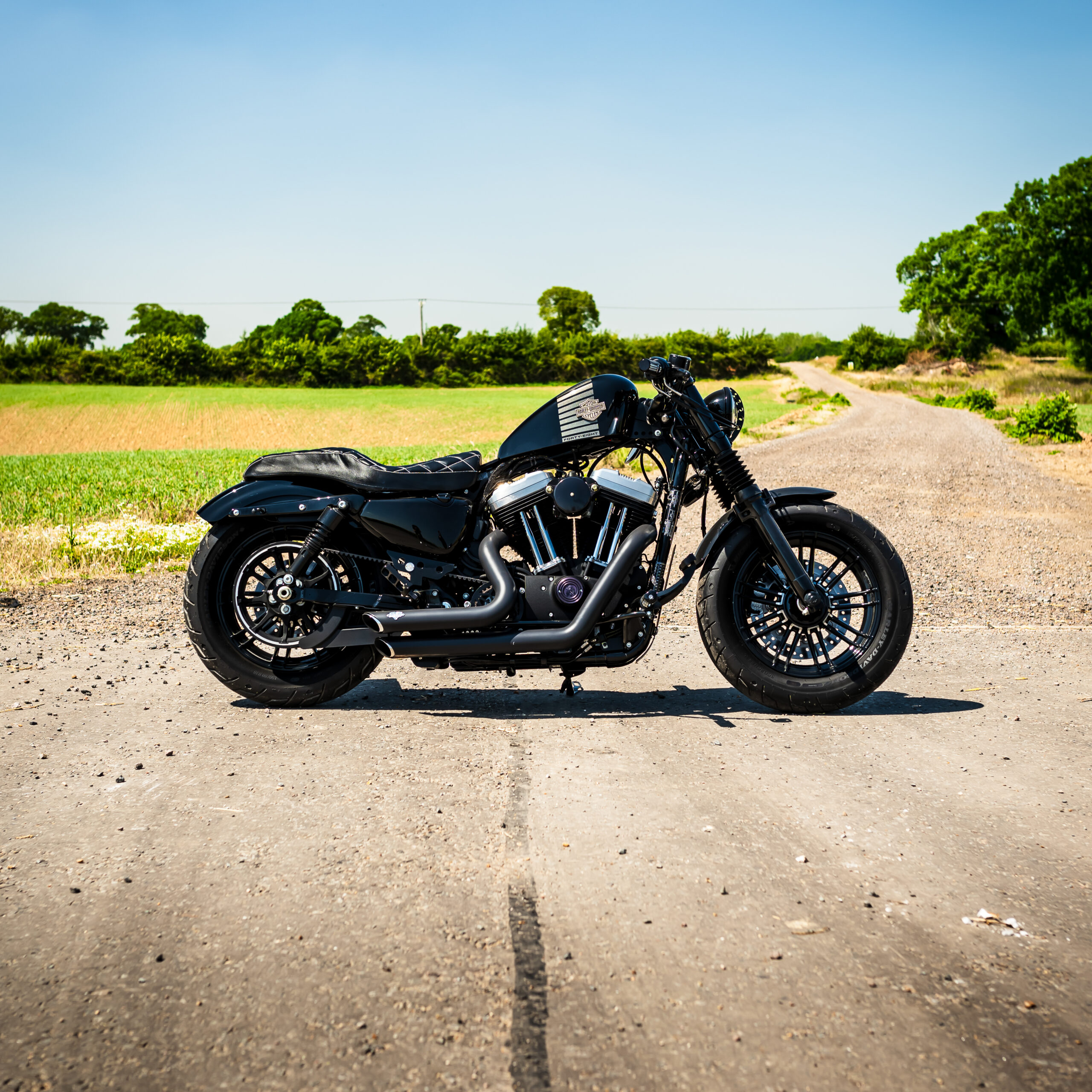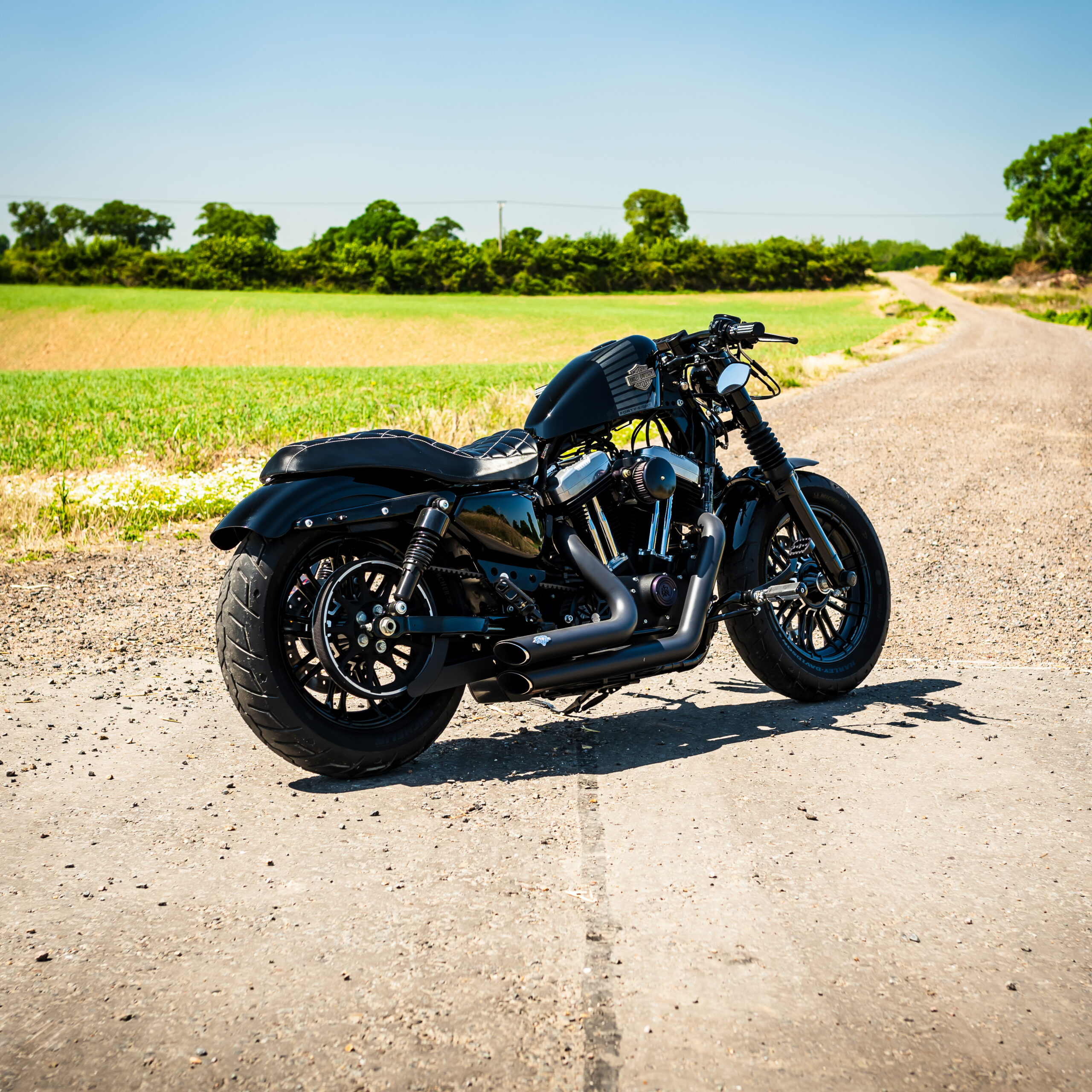 The Forty-Eight is based on the running gear of the Sportster 1200, but with different wheels & tires and wider-mounted front forks to match. The front mudguard is a shorty-style guard mounted on a fork brace, and the rear mudguard is cut-down too. As standard the 48 is single-seat with a height of 710mm, and the indicators also incorporate the rear brake lights like the Nightster. The mirrors are mounted under the handlebars for a sleek look, and the engine, air filter cover, hand controls and indicator bodies are finished in black to keep you looking stealthy whatever the weather! Fancy your chance to win this one? ENTER NOW!