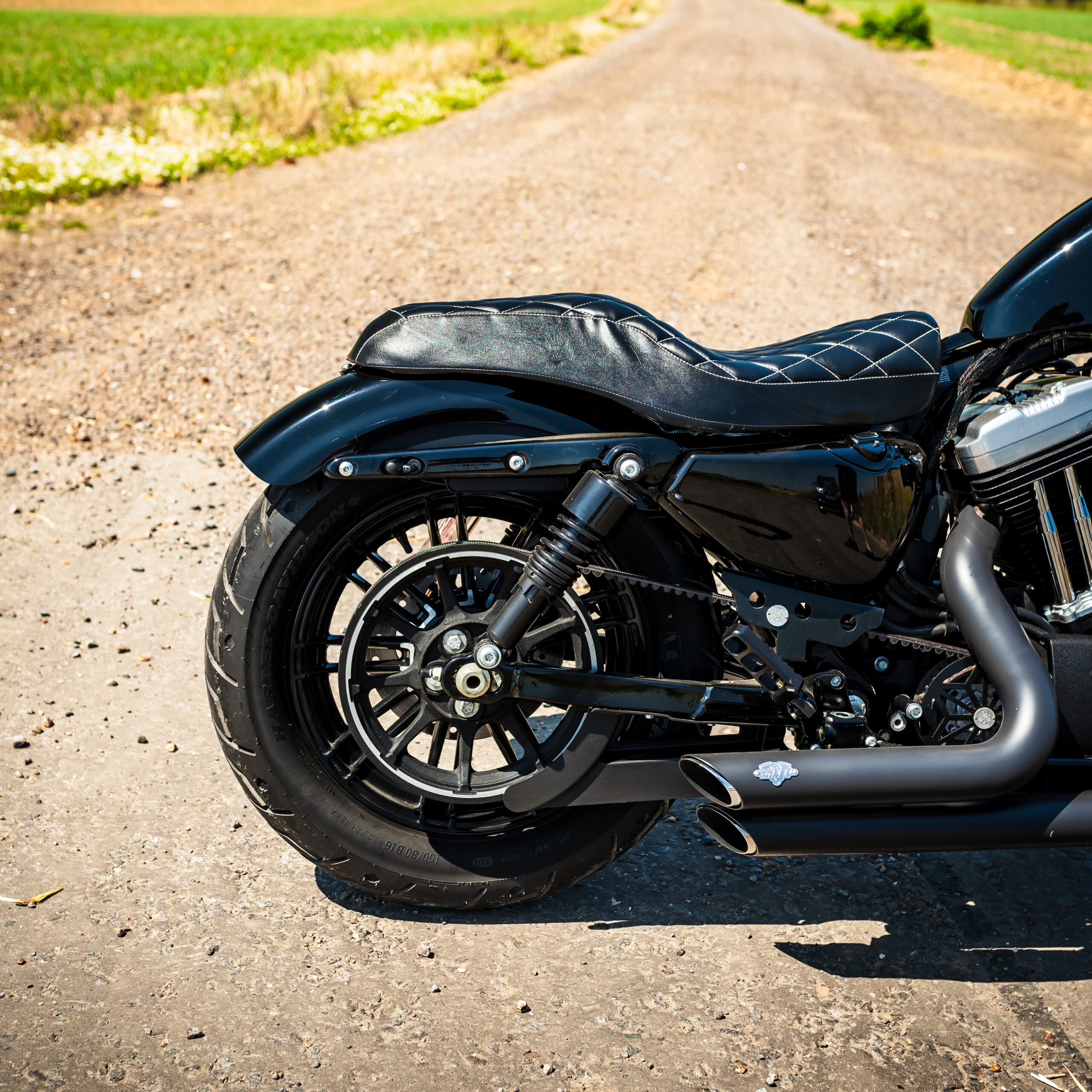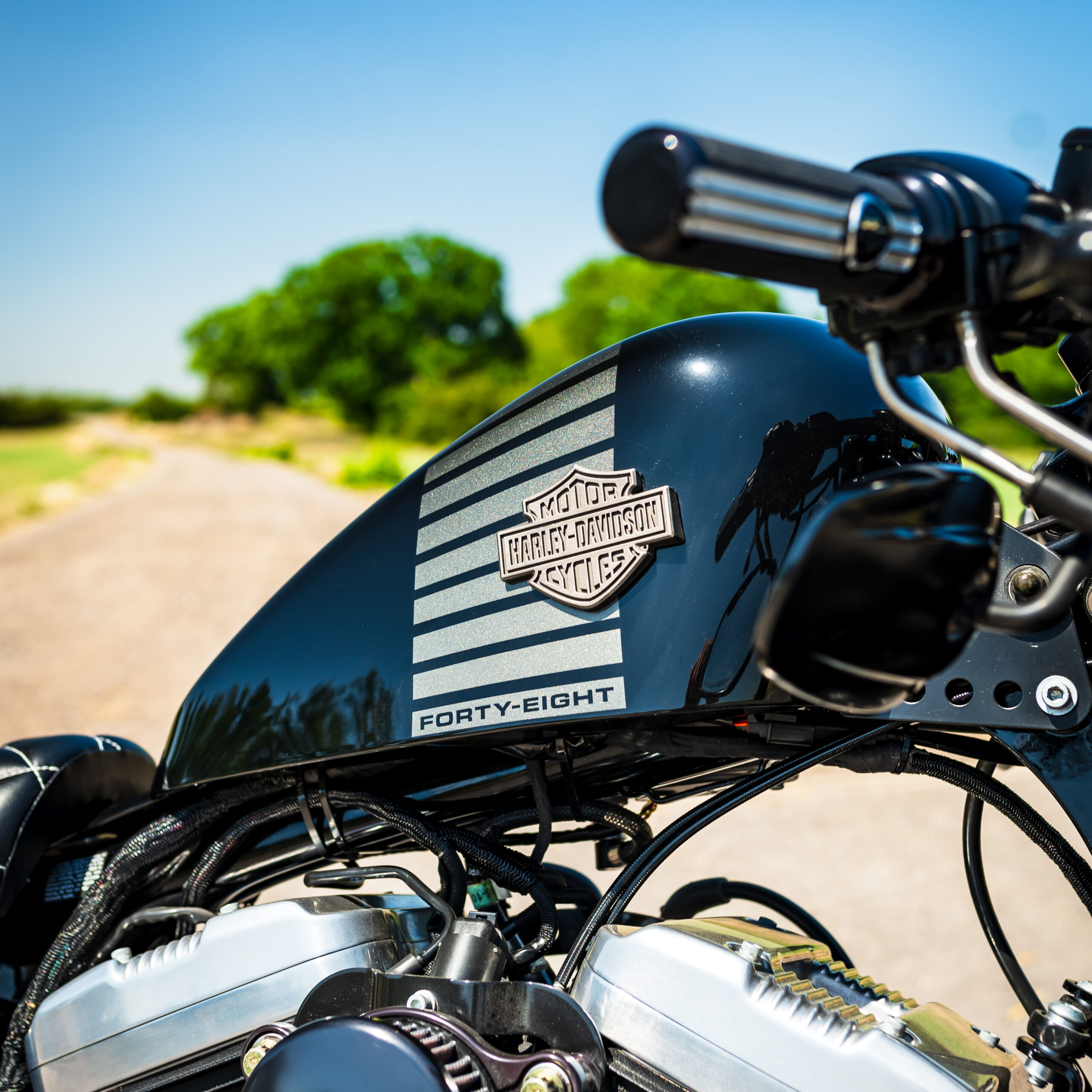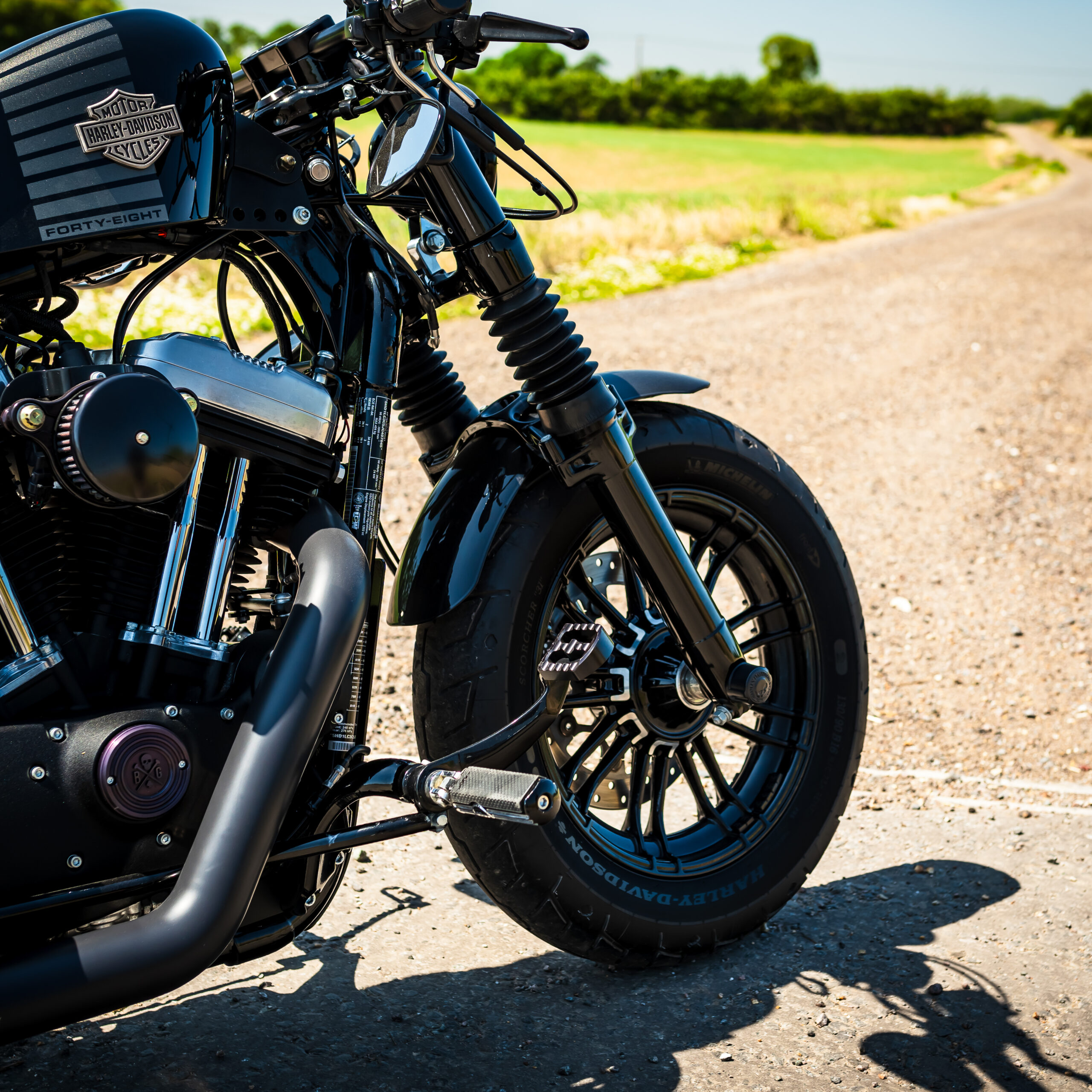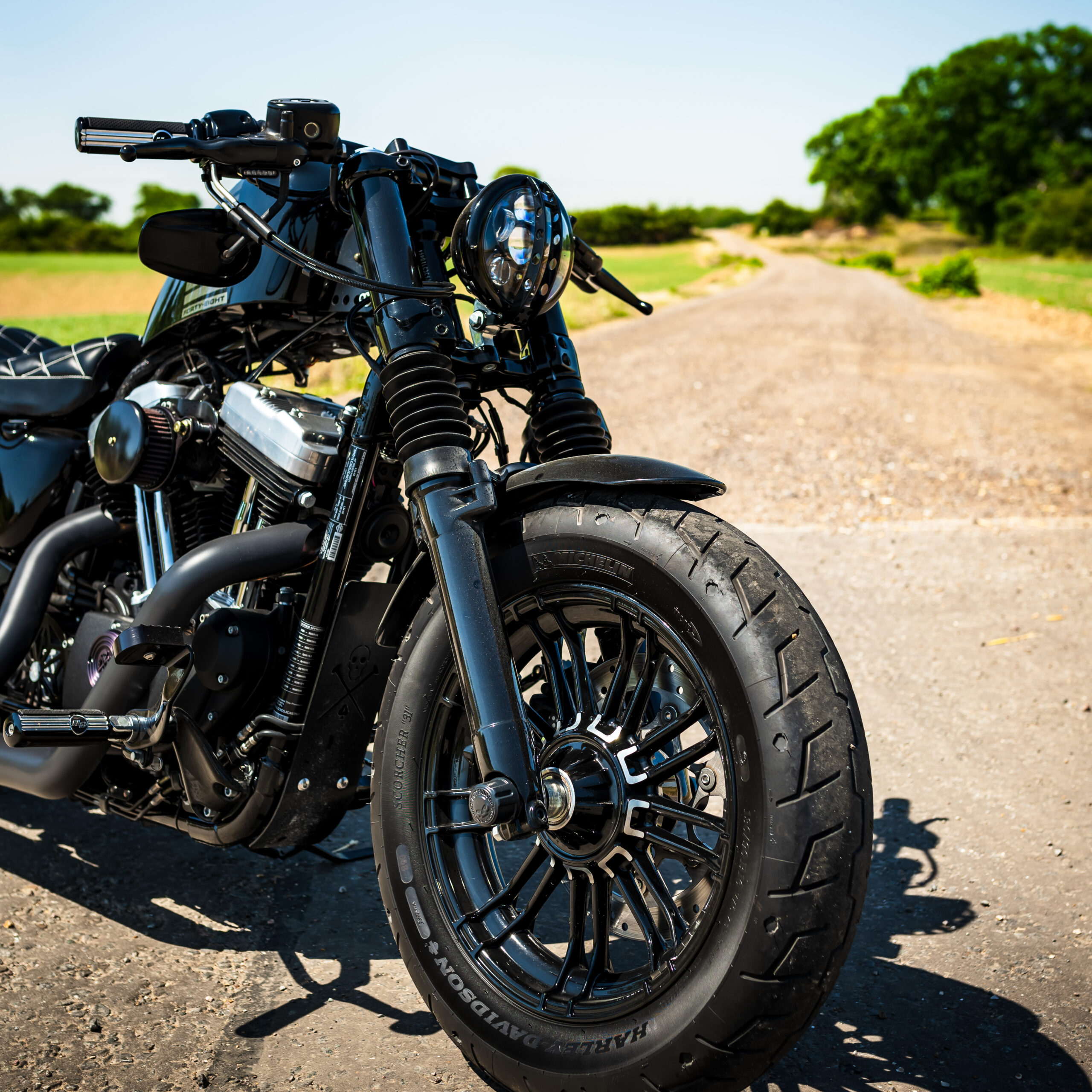 The Forty-Eight is based on the running gear of the Sportster 1200, but with different wheels & tires and wider-mounted front forks to match. The front mudguard is a shorty-style guard mounted on a fork brace, and the rear mudguard is cut-down too. As standard the 48 is single-seat with a height of 710mm, and the indicators also incorporate the rear brake lights like the Nightster. The mirrors are mounted under the handlebars for a sleek look, and the engine, air filter cover, hand controls and indicator bodies are finished in black to keep you looking stealthy whatever the weather! Fancy your chance to win this one? ENTER NOW!