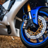 New fully-adjustable KYB rear shock and 43mm upside forks have been developed for this generation R1, the front wheel spindle is bigger for extra rigidity and this was first time Yamaha used cast magnesium wheels. The machine is smaller, more compact and feels more like an R6 flicking in and out of the corners. The riding position mirrors the M1 MotoGP bike’s. The seat is flatter, roomier and the fuel tank narrower, with cut-outs for your knees to help you get locked-in.